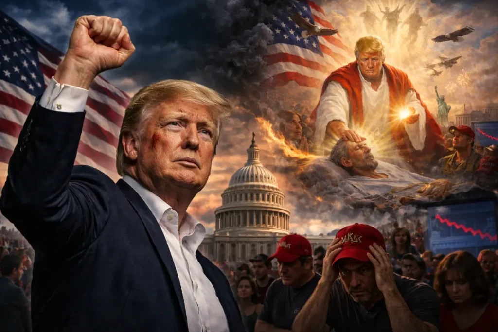 En julio de 2024, Trump sobrevivió a un atentado. El tirador falló por centímetros. El atentado ocurrió en un evento en vivo. Fue grabado. La actitud de Trump después del atentado fue valiente, desafiante. Actuó, -honestamente-, con heroicidad. La imagen de Trump victorioso, levantando el brazo en señal de fuerza y desafío, con sangre corriéndole por el rostro, le dio la vuelta al mundo. Esa imagen, ese evento, ese momento, lo catapultaron para ganar la elección presidencial.