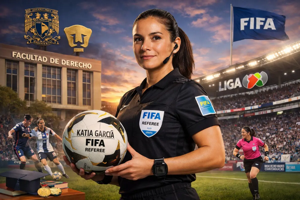 El balón lleva el sello inconfundible de Katia Itzel García Mendoza, la primera árbitra egresada de las aulas universitarias mexicanas que ha roto barreras en el arbitraje nacional e internacional. Esta destacada profesional, formada en la Facultad de Ciencias Políticas y Sociales (FCPyS) de la UNAM y actual estudiante de Derecho en la misma institución, por cierto la Facultad de Derecho celebra décadas de su creación formando profesionales, es el caso de una digna representante puma, que además representa un hito en la historia del fútbol mexicano: es la primera mujer en obtener el gafete FIFA, su origen deportivo proveniente directamente de las aulas universitarias y en dirigir partidos de la Liga MX varonil en la era moderna.
