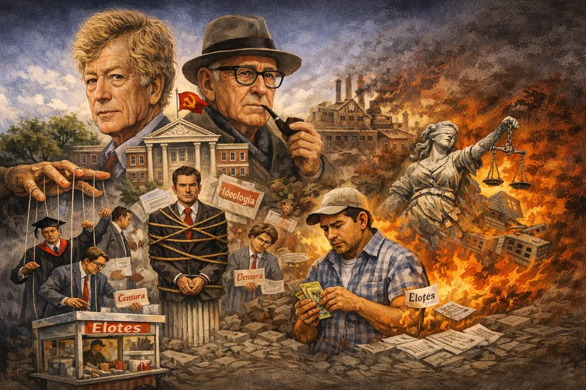 Roger Scruton fue uno de los filósofos conservadores más influyentes del Reino Unido, reconocido por su defensa de la estética, el orden civil y la importancia de las instituciones intermedias frente a la deshumanización del Estado. Por su parte, Robert Conquest fue un historiador británico cuyas investigaciones sobre el «Gran Terror» y las purgas soviéticas desmantelaron las ilusiones de muchos intelectuales sobre el comunismo. Ambos contribuyeron a entender el avance de la izquierda a través de las instituciones educativas, empresariales y culturales.
